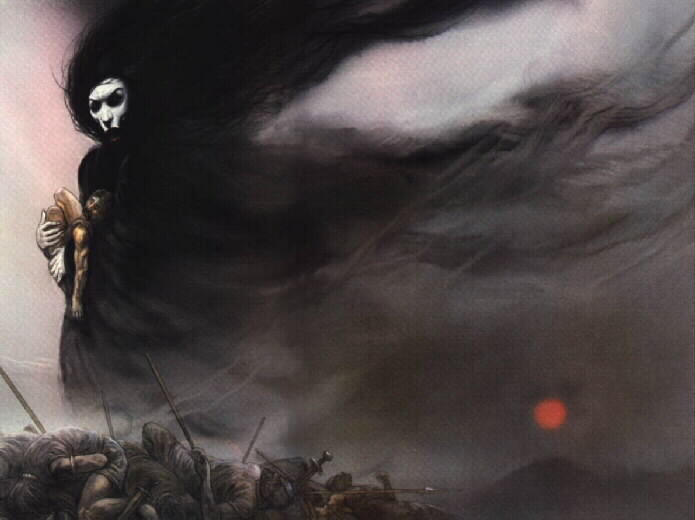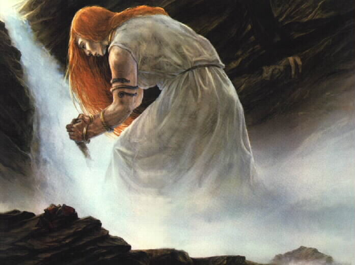 ... wusch im Morgennebel vor der Schlacht mit ihren riesigen Händen im Fluß die Kleider derjenigen Krieger, die das bevorstehende Gefecht nicht überleben würden und das Wasser färbte sich rot von ihrem Blute.